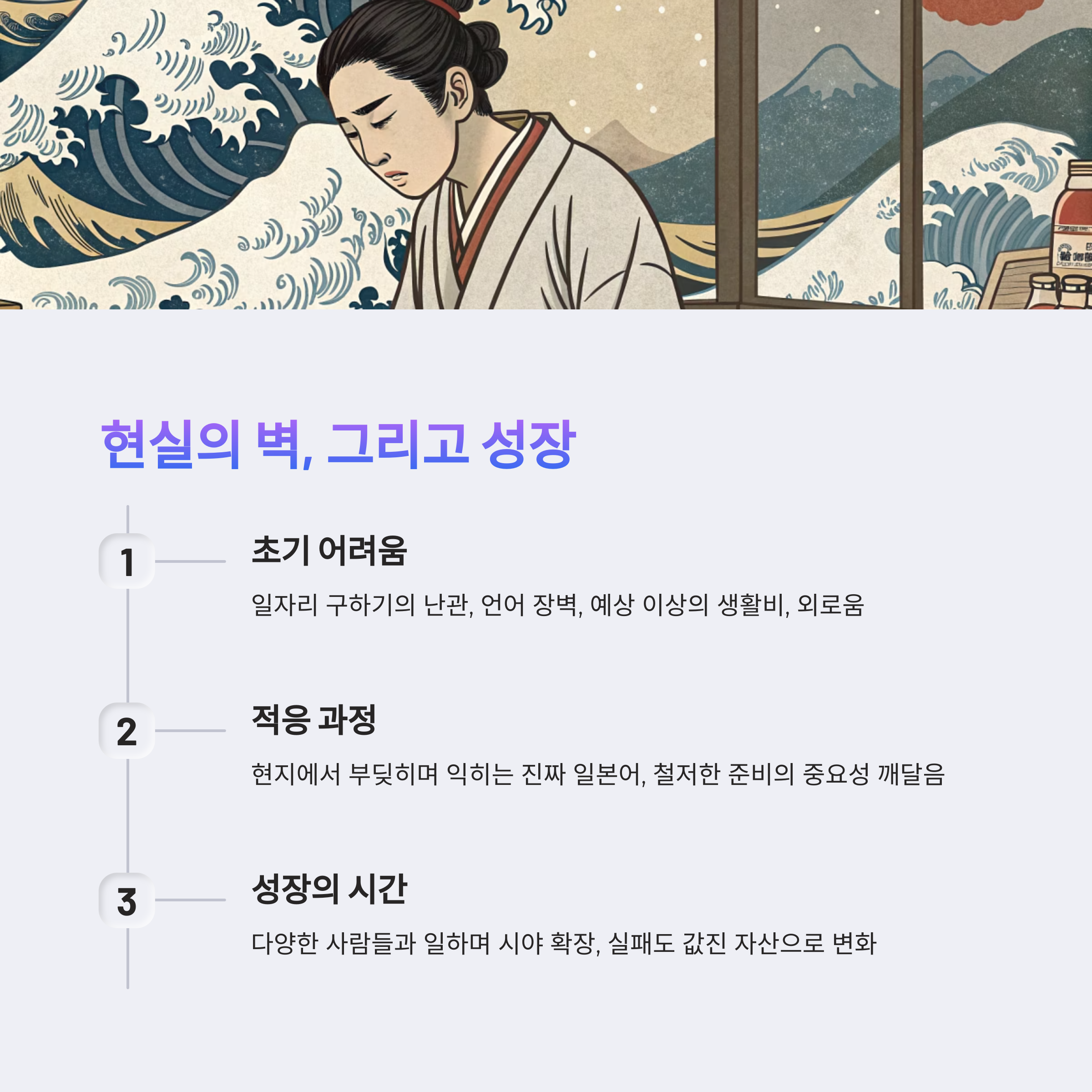 워홀 전 착각: 일본은 한국이랑 비슷할 거야! → 워홀 후 깨달음: 문화충격의 연속이었지만, 그게 더 값진 경험이 되었어요.